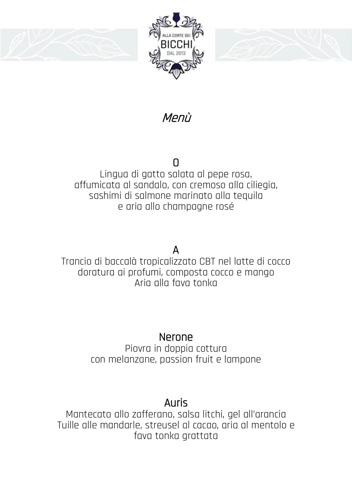 Un menù costruito come una storia, dove ogni portata ha un nome e un'anima.